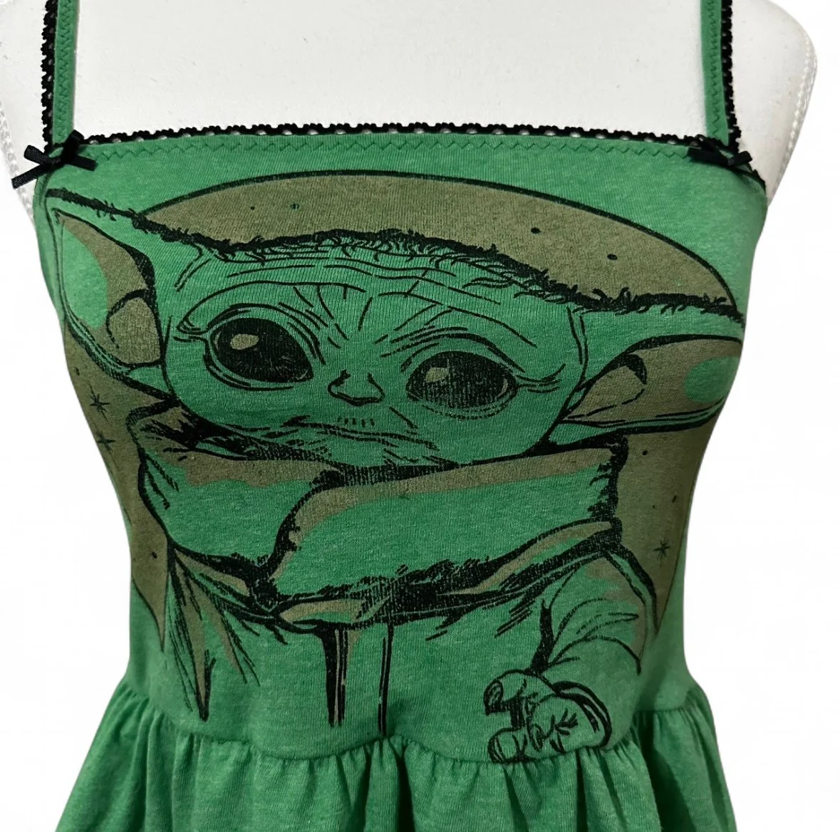 * green fabric with black elastic lace